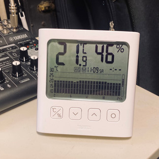 乾燥し過ぎるのも材の割れの原因になったりするので、湿度が40〜50%くらいの範囲が良いらしいです。(見たところウチはギターにとって過酷な環境ではなさそうですw)