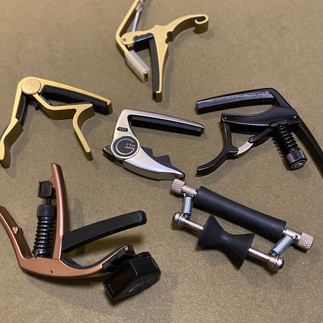 定番のKyserやJim Dunlopの洗濯バサミ型のやつから、演奏中にズラして位置を移動可能なGLIDER CAPO 、そしてg7thのカポなどなど!